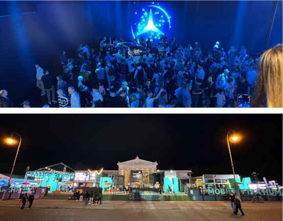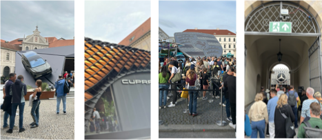 … das macht mächtig was her. Und lässt das interessierte Publikum ausgesprochen kommod mitten in der Stadt kostenlos glitzernde Welten bestaunen und jede Menge Give-Aways und Freigetränke einsammeln. Mercedes, BMW, Porsche, Audi und VW, aber auch die Spanier von Cupra, die Amerikaner von Lucid sowie reichlich chinesische Marken … von ‘Schon mal gehört’ (BYD) bis ‘Hä?’ (Avatr) … buhlen mit spektakulären Inszenierungen um Aufmerksamkeit für … ja, für was eigentlich?